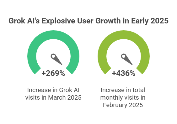 These numbers demonstrate that Grok AI quickly became a significant player, with model updates serving as major catalysts for user acquisition.