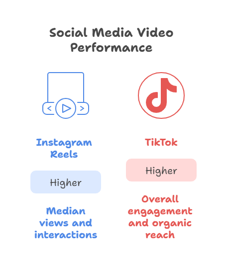 While TikTok’s powerful “For You Page” algorithm often delivers a higher overall engagement rate (likes, comments, etc.) and makes it easier for new creators to achieve viral organic reach quickly, Instagram Reels demonstrate superior median views and interactions for brands.