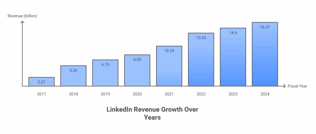 LinkedIn earns $16.37 billion in 2024, up 9.9%. Premium hits $6.44 billion, nearly double 2019.