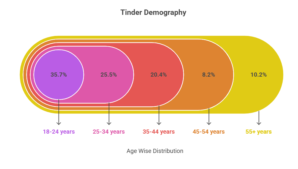 35-44 years20.4%A growing segment, showing Tinder’s expanding appeal beyond just youth.