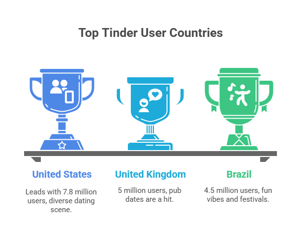 This distribution highlights Tinder’s strong foundation in Western markets, though its influence stretches across continents.
