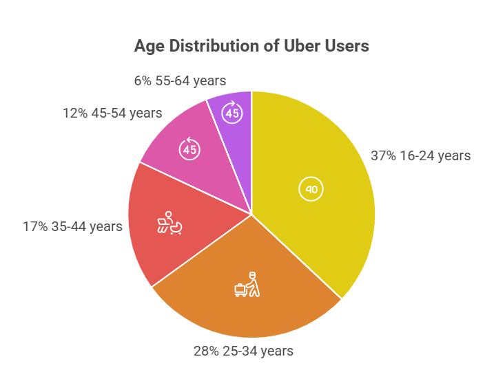 The demographics of Uber users are also insightful. In the United States, 52% of Uber users are male, and 48% are female. The largest age group of users falls between 16 and 24 years old, making up 37% of the user base, followed by 28% in the 25-34 age bracket.