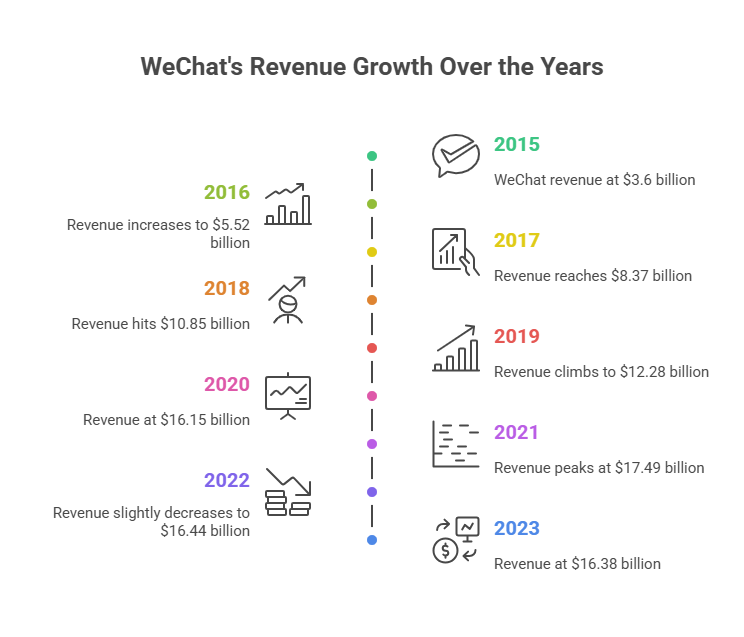 In 2023, WeChat generated an annual revenue of $16.38 billion. While this marked a slight decrease of 0.85% from $16.44 billion in 2022, it still represents an immense financial scale.